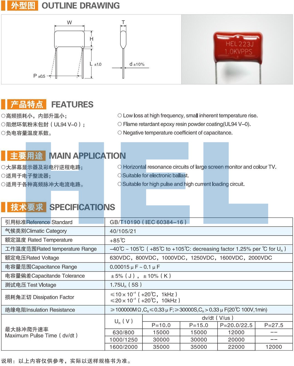 PPS高壓金屬化聚丙烯薄膜/箔式電容器 CBB81